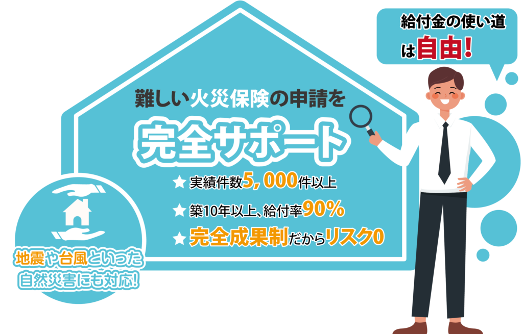 保険請求実績3年以上の専門家が調査から書類作成をサポート。